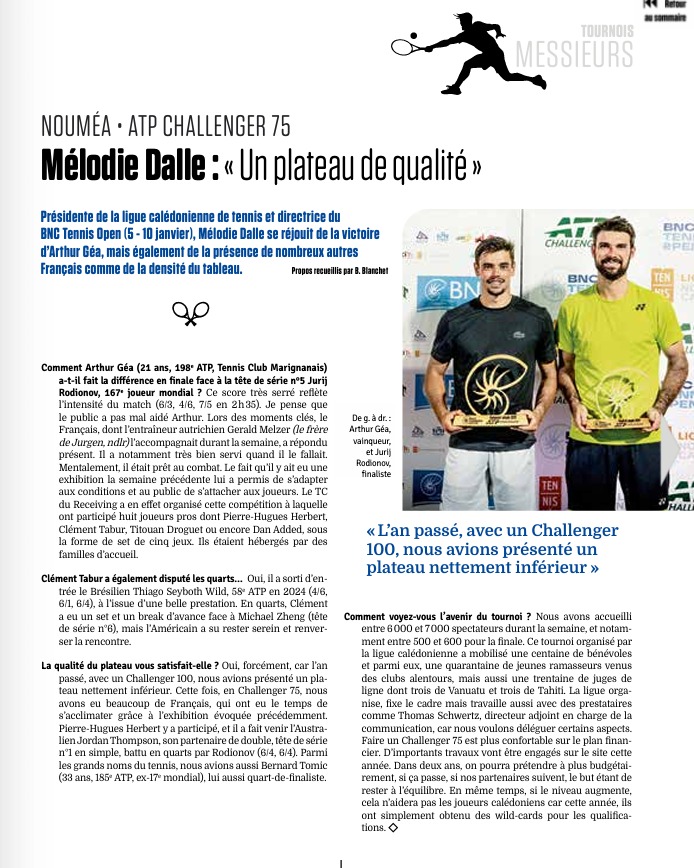 Non classé BNC TENNIS OPEN 2026 : l’interview de Mélodie Dalle 23 mars 2026 6 Retrouvez l'interview de la Présidente de la Ligue et Directrice du BNC TENNIS OPEN dans Tennis Info de Mars 2026