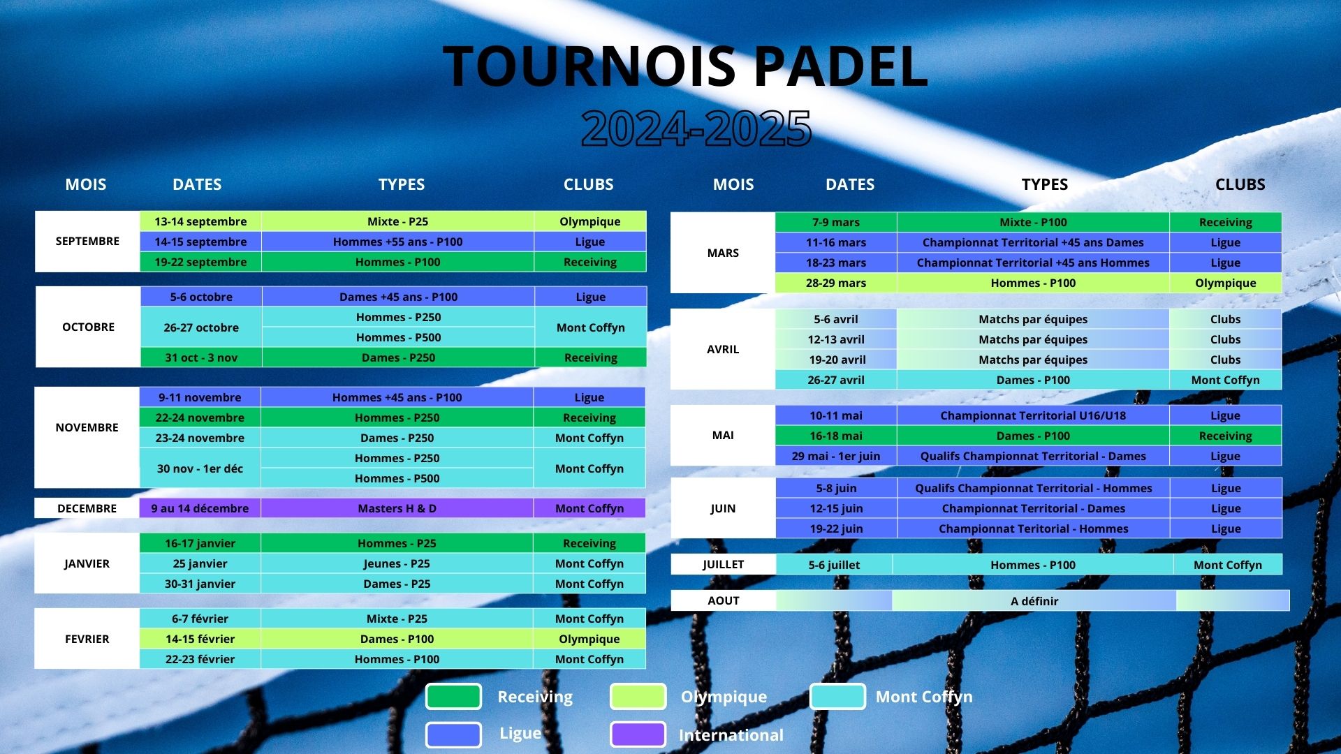 Calendrier Padel