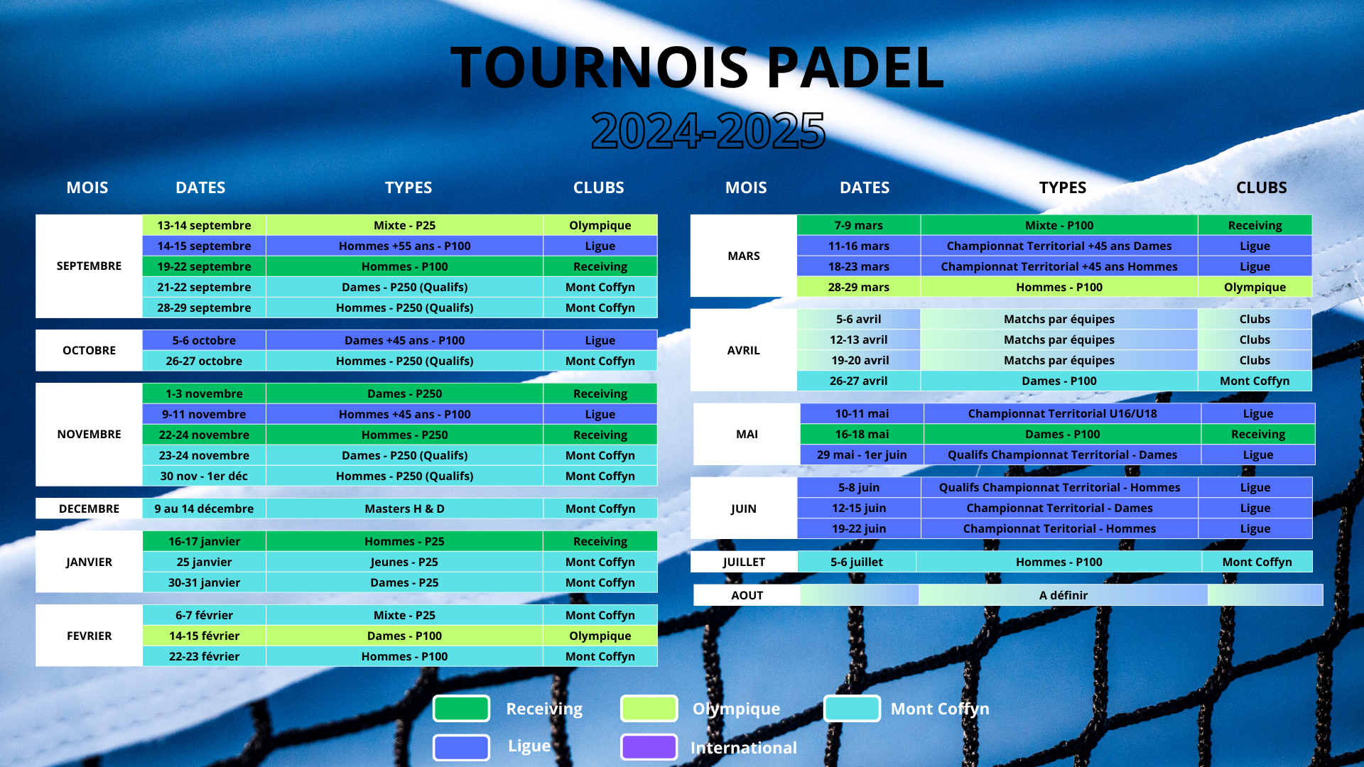Calendrier Padel