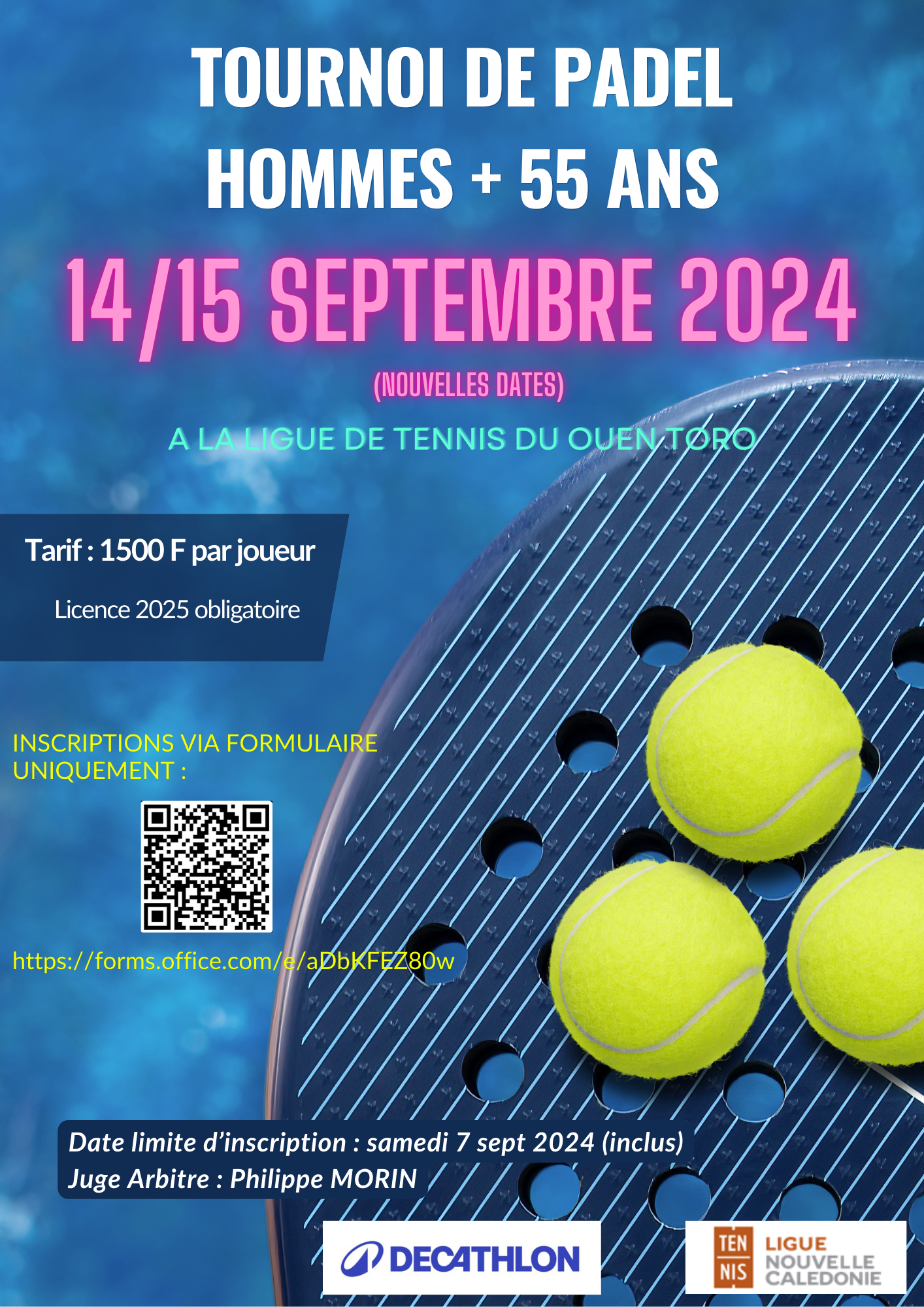 Tournoi padel Hommes +55 ans - 14-15 septembre 2024 Nouvelles dates